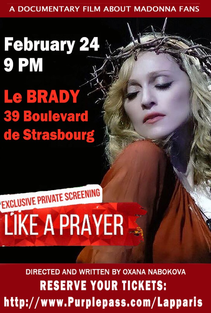 If you are in Paris, join us for the final film screening of “Like a Prayer” on Feb 24th at 9 p.m. Theatre: Le Brady